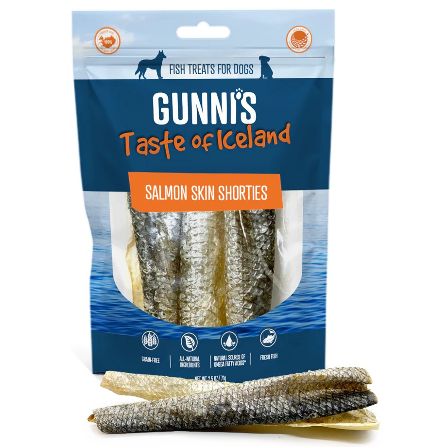 Tökéletes választás azoknak a kutyáknak, akik szeretnek rágcsálni: a Gunis Shorties közepes hosszúságú jutalomfalatok gazdag ízzel és természetes omega-3- és omega-6-zsírsavakkal. 100% izlandi lazacbőrből, napon szárítva készülnek, rugalmas állagúak, ízletesek és természetesen táplálóak.